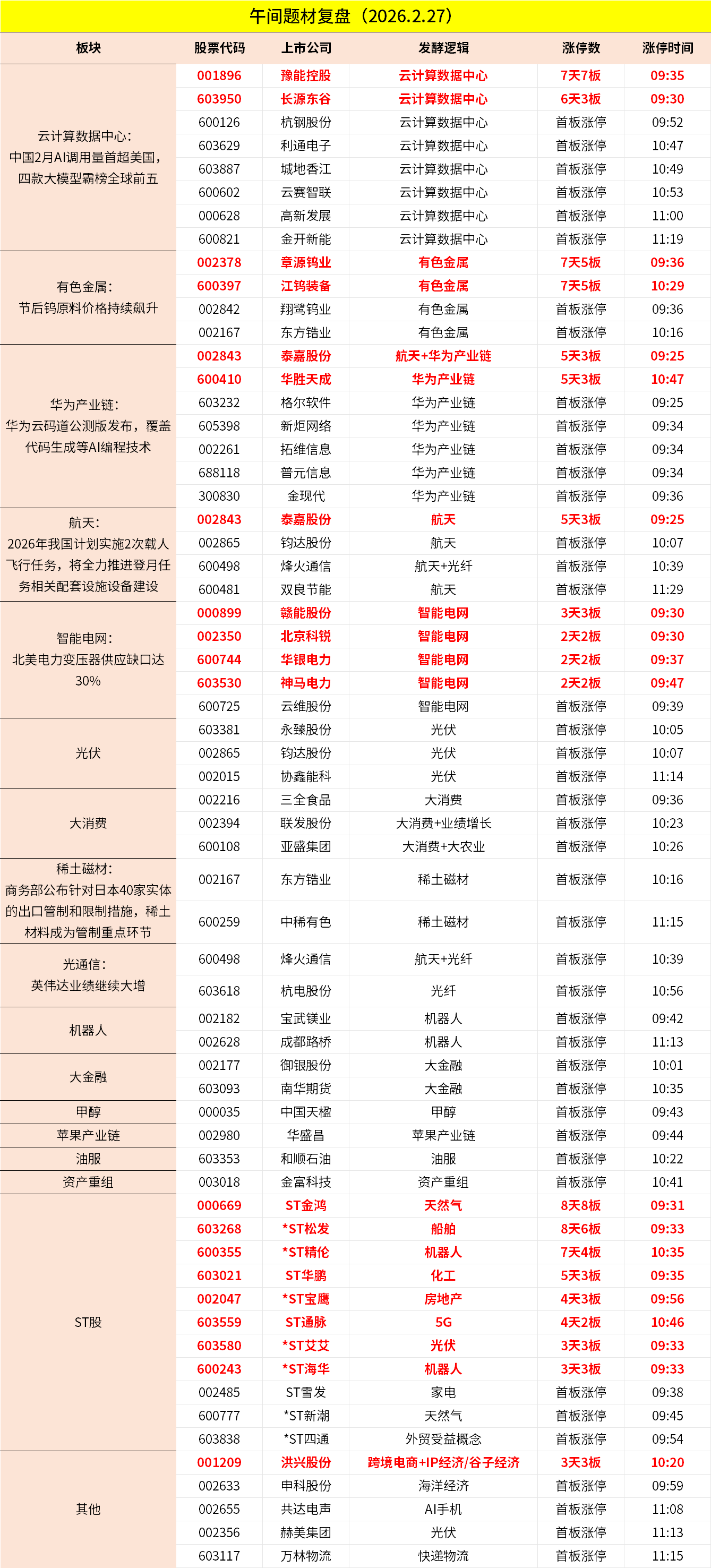 2月27日午间收评:创业板指半日跌1.46%,算力租赁、有色板块逆势走强