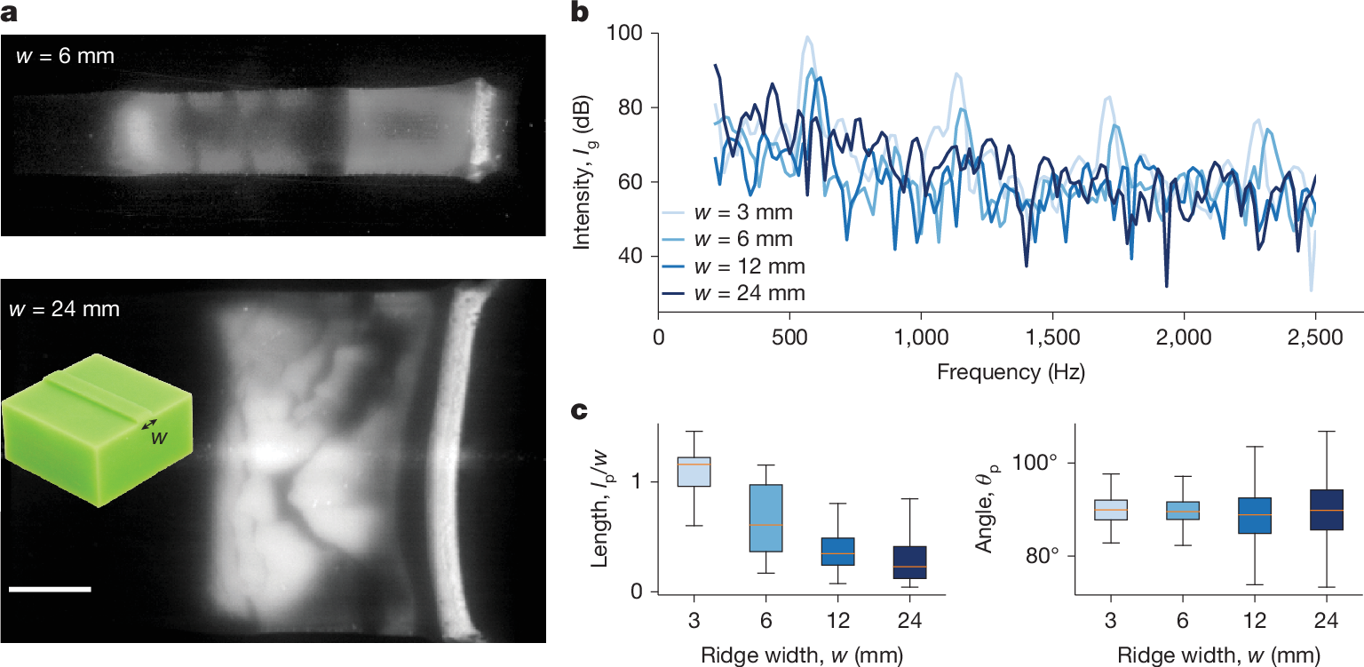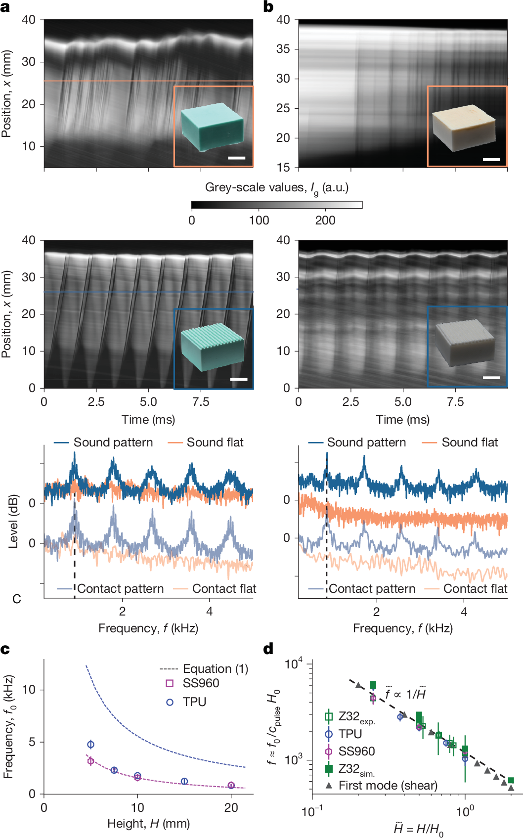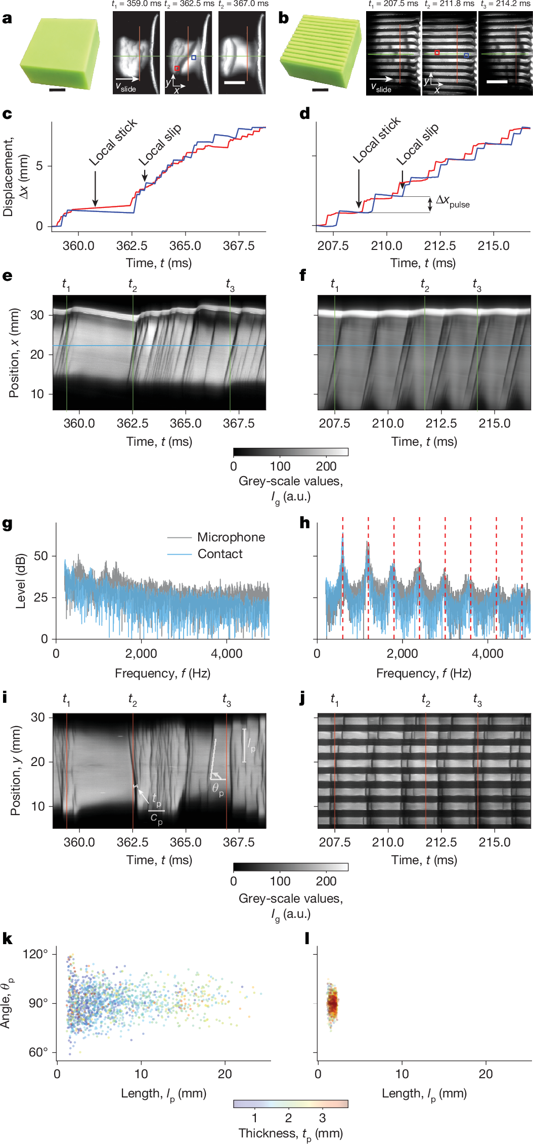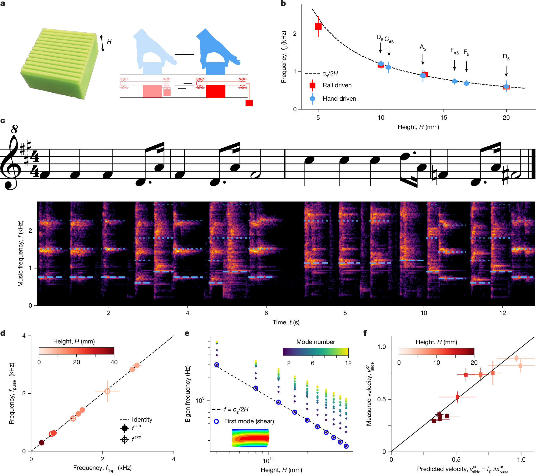 Squeaking is a constant companion in various aspects of our daily lives, whether we slide rubber-soled shoes across hardwood floors1, scrape chalk on a blackboard2, engage the brakes on a bicycle3 or walk with a hip replacement4,5. When two rigid bodies slide over each other, squeaking is widely understood to result from self-excited stick–slip oscillations, triggered by a decrease in the friction coefficient with increasing slip velocity6,7,8,9,10. However, sliding of extended interfaces can involve crack or slip-pulse propagation11,12,13,14,15,16,17,18,19,20,21. This distinction is amplified when a soft body slides on a rigid one, in which large deformations and material mismatch can cause detachment by opening slip pulses22,23,24,25,26,27. Previous studies focused mainly on slow sliding17,26,28,29,30,31,32,33,34, in which pulses are slow and squeaking is absent. Although squeaking at soft–rigid interfaces has been linked to stick–slip oscillations35,36,37, the mechanisms remain unclear. Here we experimentally investigate soft–rigid interfaces sliding at velocities that produce squeaking. High-speed imaging and acoustic analysis show that opening pulses propagate at approximately the shear wave speed of the soft material, mediating local slip across diverse materials. In flat samples, these pulses are irregular and generate broadband acoustic emissions. Introducing thin surface ridges confines pulse propagation, yielding a consistent repetition frequency matching the first shear mode of the sliding block and squeaking at that frequency. These findings show a structure-driven mechanism that stabilizes rupture in bimaterial friction. Geometric confinement suppresses competing modes, transforming irregular two-dimensional dynamics into coherent one-dimensional pulse trains, offering new insights into frictional rupture from engineered surfaces to geological faults.