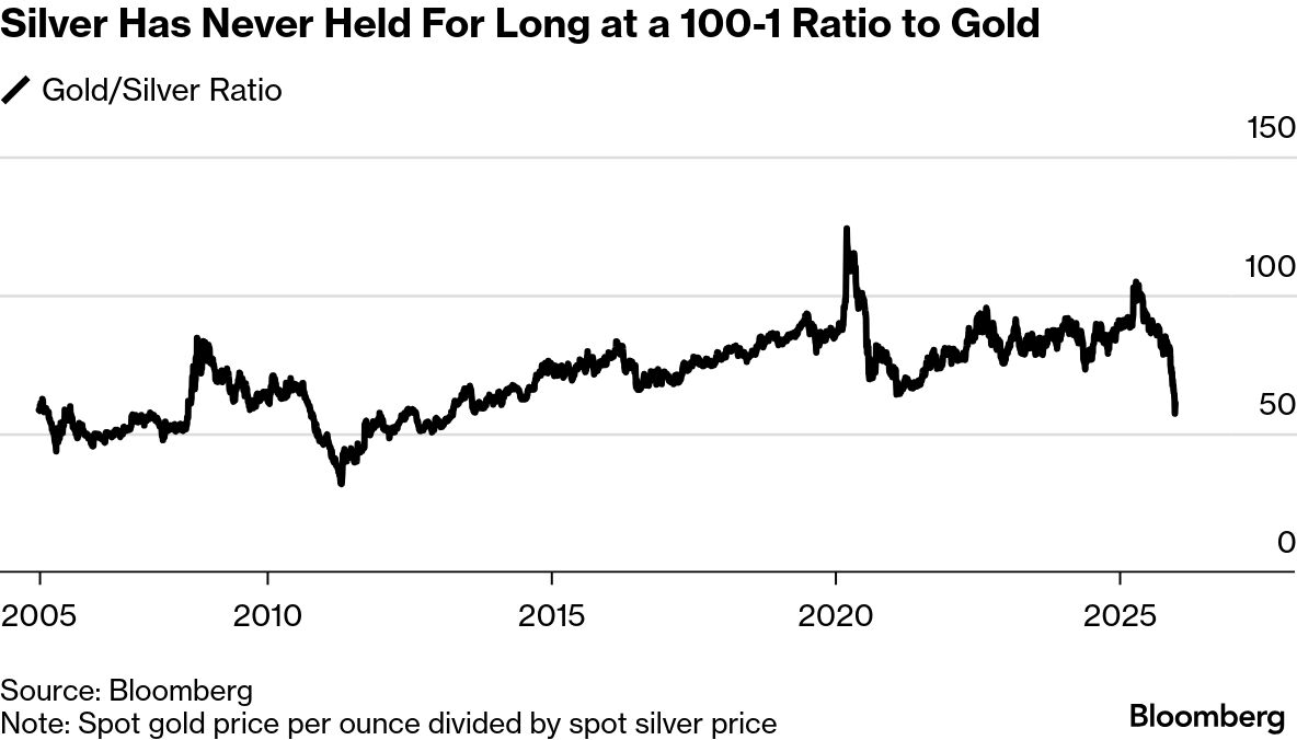 - •The gold-to-silver ratio has shifted lower recently, indicating silver's catch-up rally after gold's earlier surge, with historical patterns suggesting silver often moves twice as far as gold.