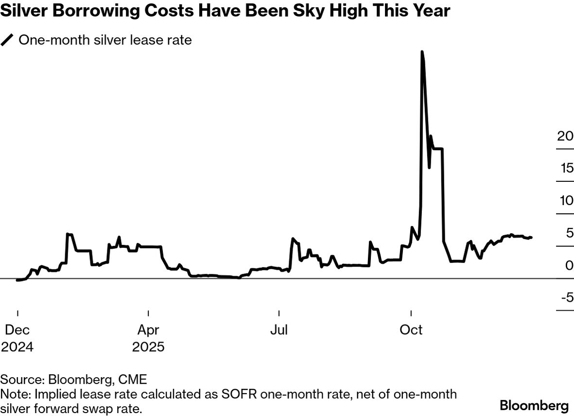 Note: Implied lease rate calculated as SOFR one-month rate, net of one-month silver forward swap rate.