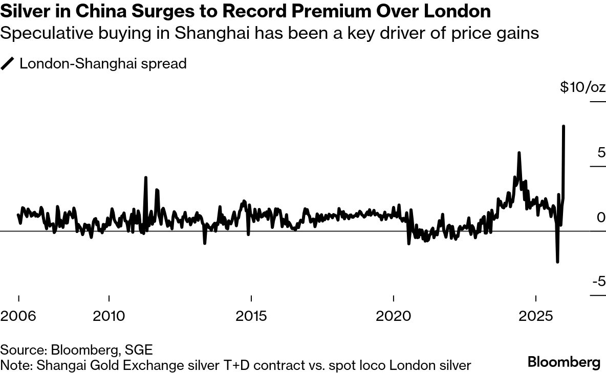 Surging investor interest in China has been a key driver of silver prices in recent days. Speculators piled into the precious metal, mirroring a similar dynamic playing out in platinum. Elevated buying in the Shanghai Gold Exchange’s silver contract in December has pushed premiums to a record high, dragging other international benchmarks along.