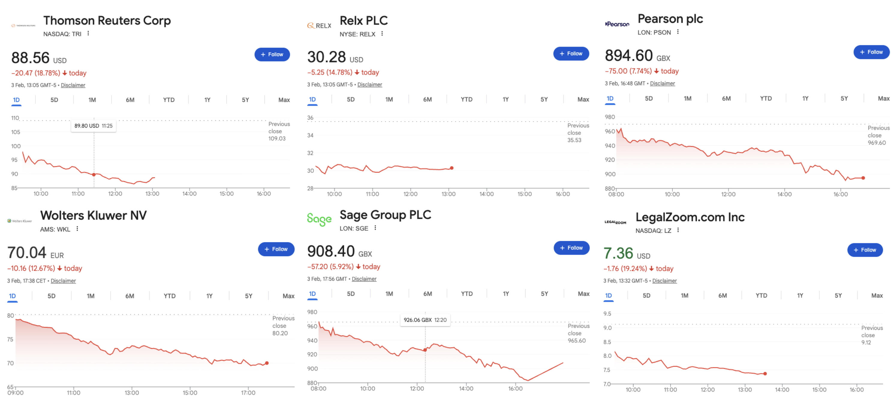 Shares of several information and professional-services companies slid sharply this week amid Anthropic's unveiling of a legal-automation tool that rattled investors’ confidence in the sector’s long-term pricing power.