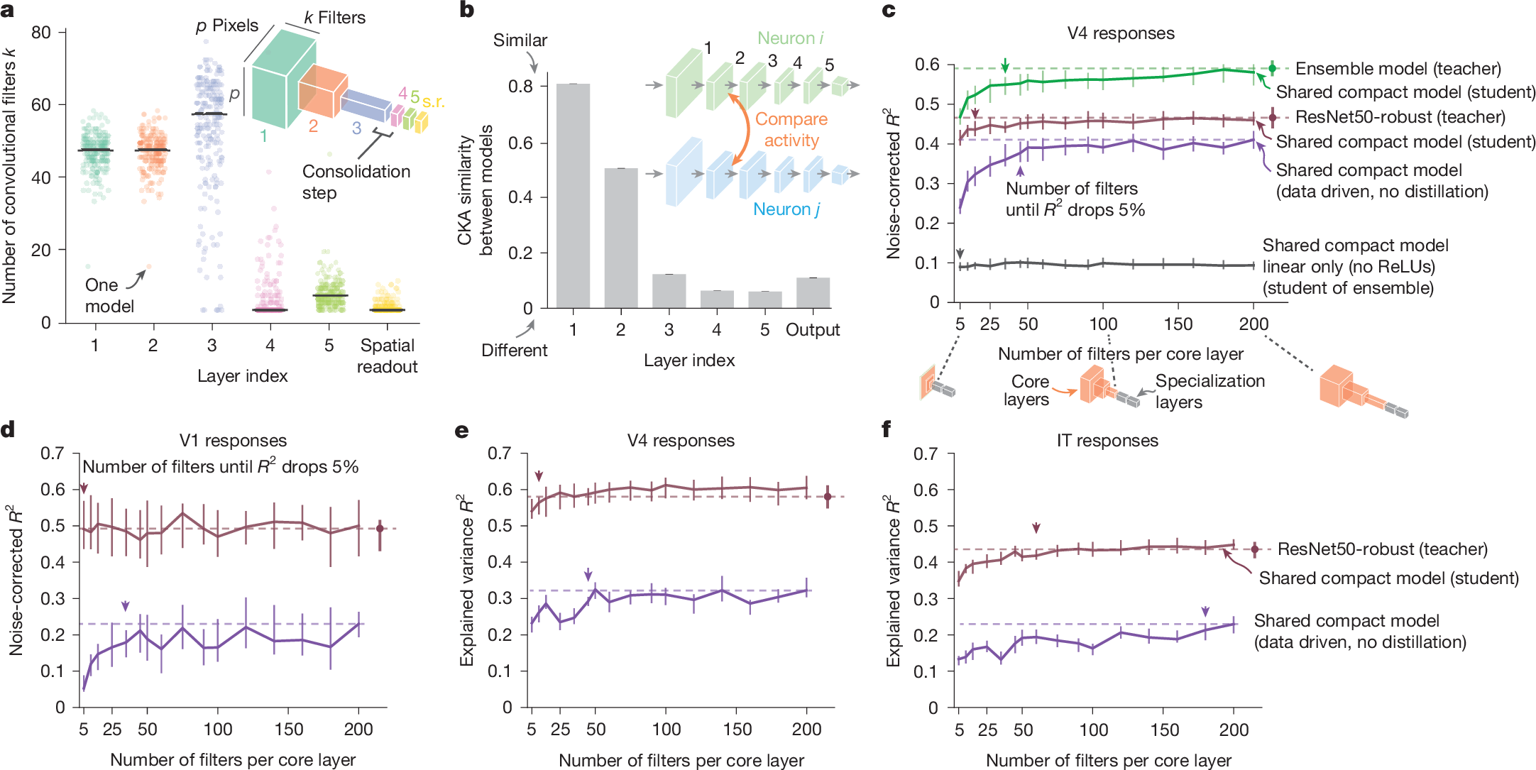 - •Compact DNN models with 5,000 times fewer parameters can predict neural responses in primate visual cortex as accurately as large models.