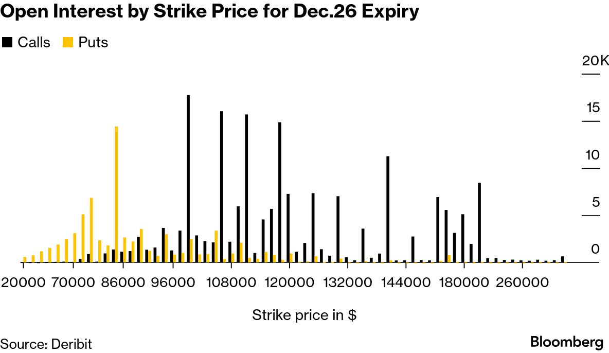The amount accounts for more than half of all the open interest on Deribit, the largest Bitcoin options venue. The looming buildup shows traders are pricing in continued downside risk in what’s become an even more perilous market.