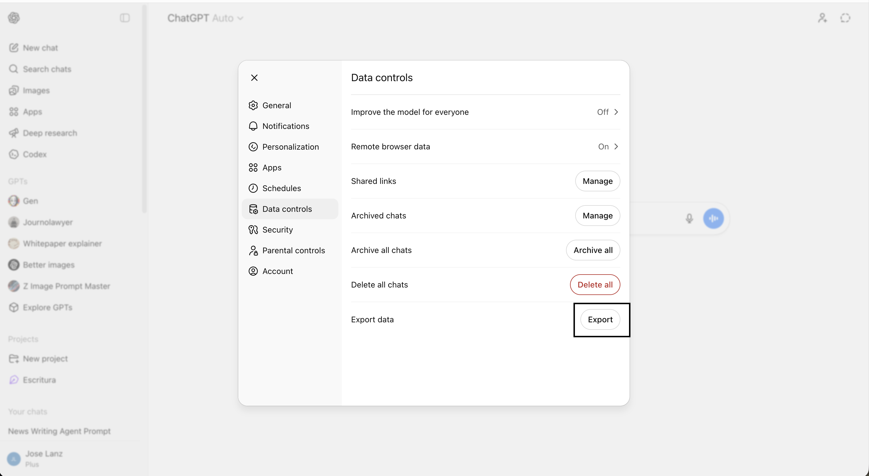 The same export option works on Free, Plus, and Pro plans. If you have set up Custom GPTs or Projects with their own context, run the export separately from within each of those, as they store their own conversation histories. Note: If you are on a Team or Enterprise plan, workspace conversations cannot be exported at all.