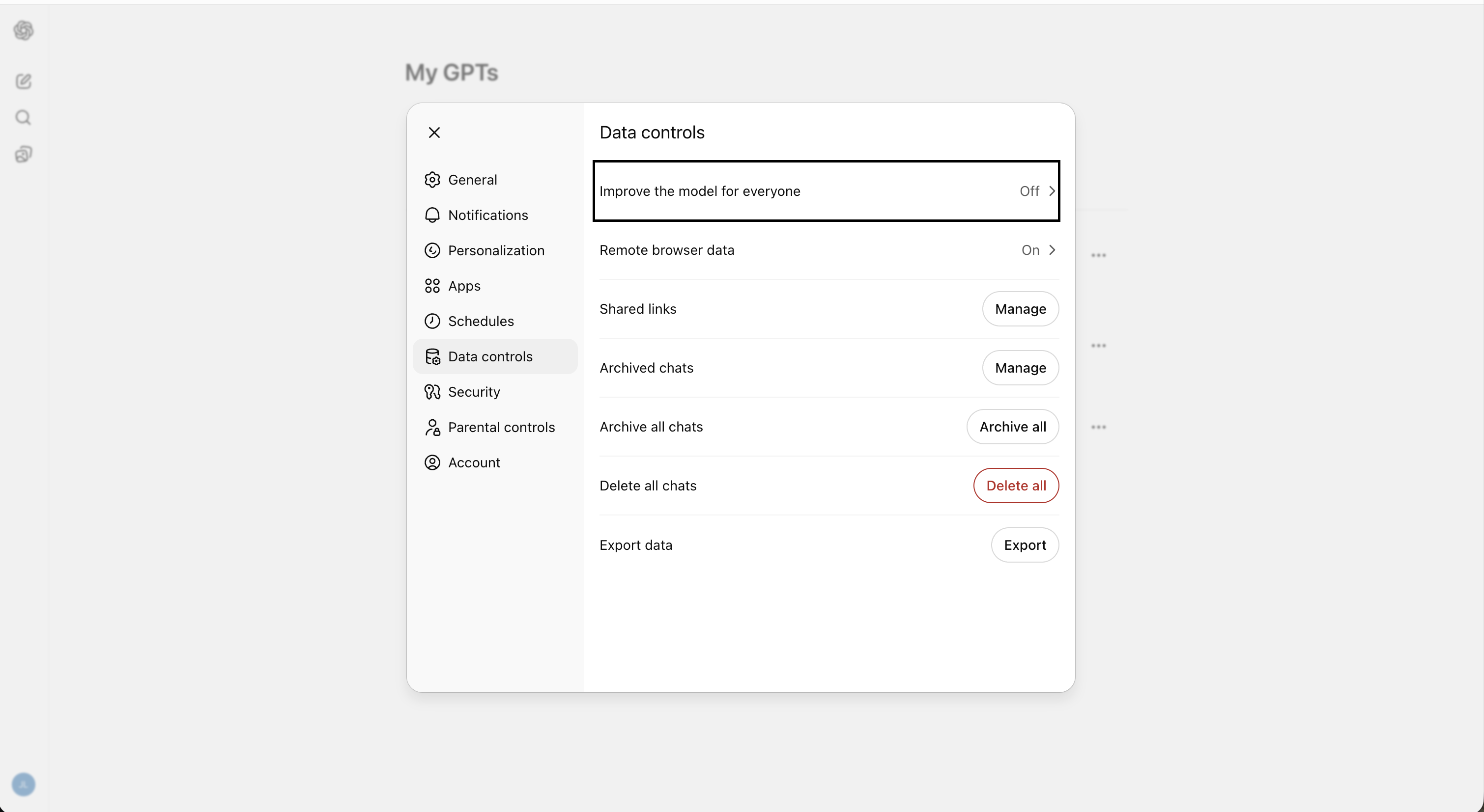 This is the single most important setting most ChatGPT users have never touched. By default, OpenAI can use your conversations to improve its models—meaning your prompts, your personal details, and your corrections are potentially reviewed by trainers and used to shape future versions of ChatGPT.