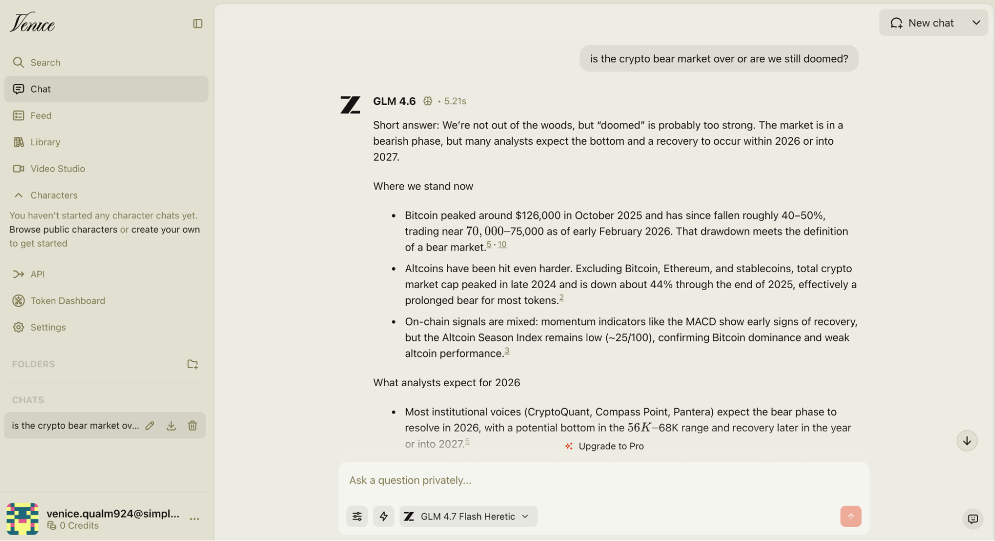 Founded by privacy advocate and Bitcoin OG Erik Voorhees, Venice is where you go when you want Confer-level privacy but also want a wider range of capabilities beyond simple text chats.