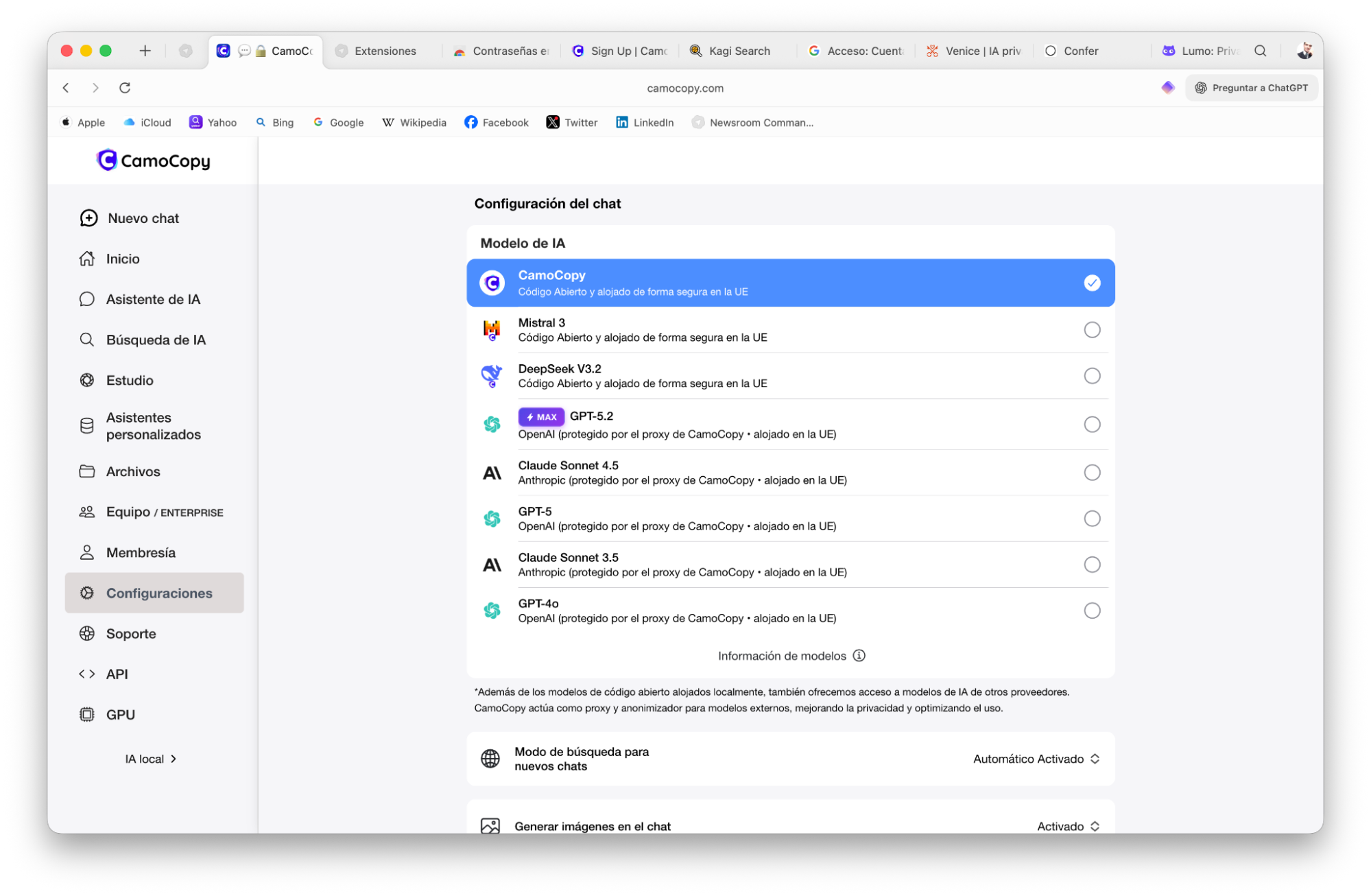 CamoCopy is a German-built AI platform that routes your Claude and ChatGPT requests through E.U. infrastructure, under GDPR constraints. The argument is that this makes those interactions legally unusable for training by the upstream providers.