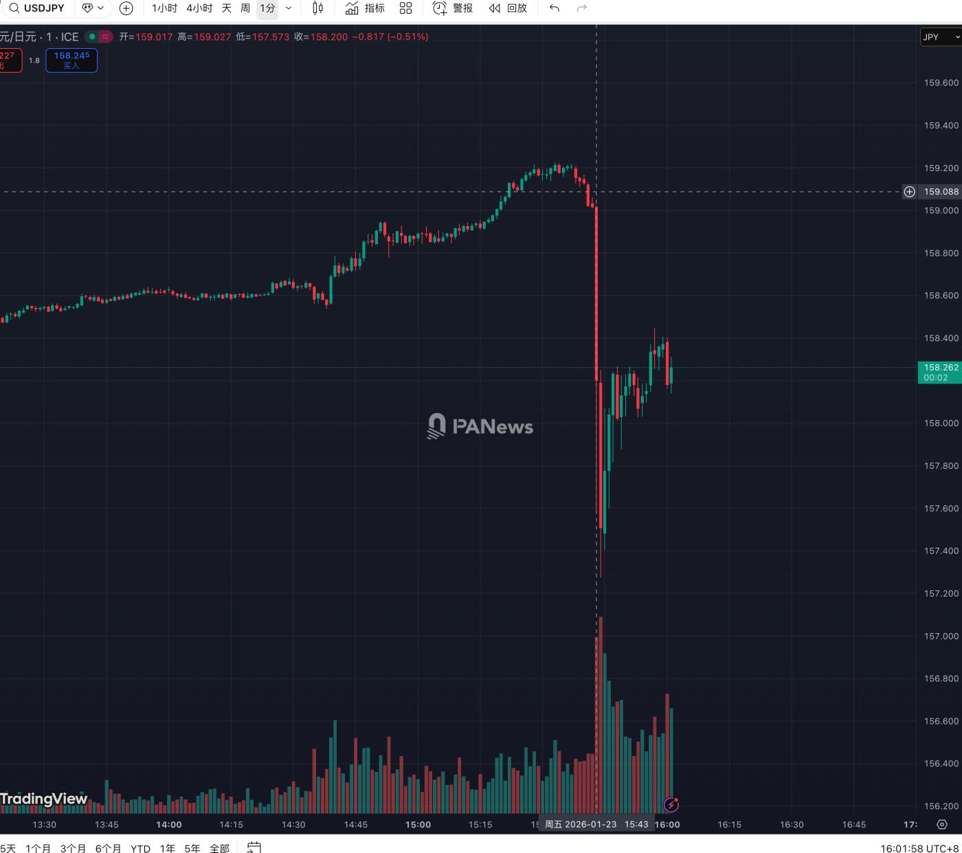 PANews reported on January 23 that the yen's sudden surge against the dollar has alerted traders to potential intervention in Tokyo to prevent the yen from falling to or near multi-year lows. The dollar fell as low as 157.33 against the yen, and was last down 0.13% at 158.17. The dollar-yen pair had previously risen by about 0.5%. The reasons behind this move are unclear, as is whether Japanese authorities have initiated yen-buying intervention. The Japanese Ministry of Finance has not yet commented.