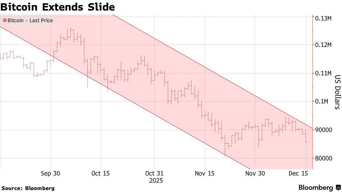 Bitcoin dropped below $86,000 for the first time in two weeks, with investor sentiment weakening as the largest cryptocurrency slips deeper into bear market territory.