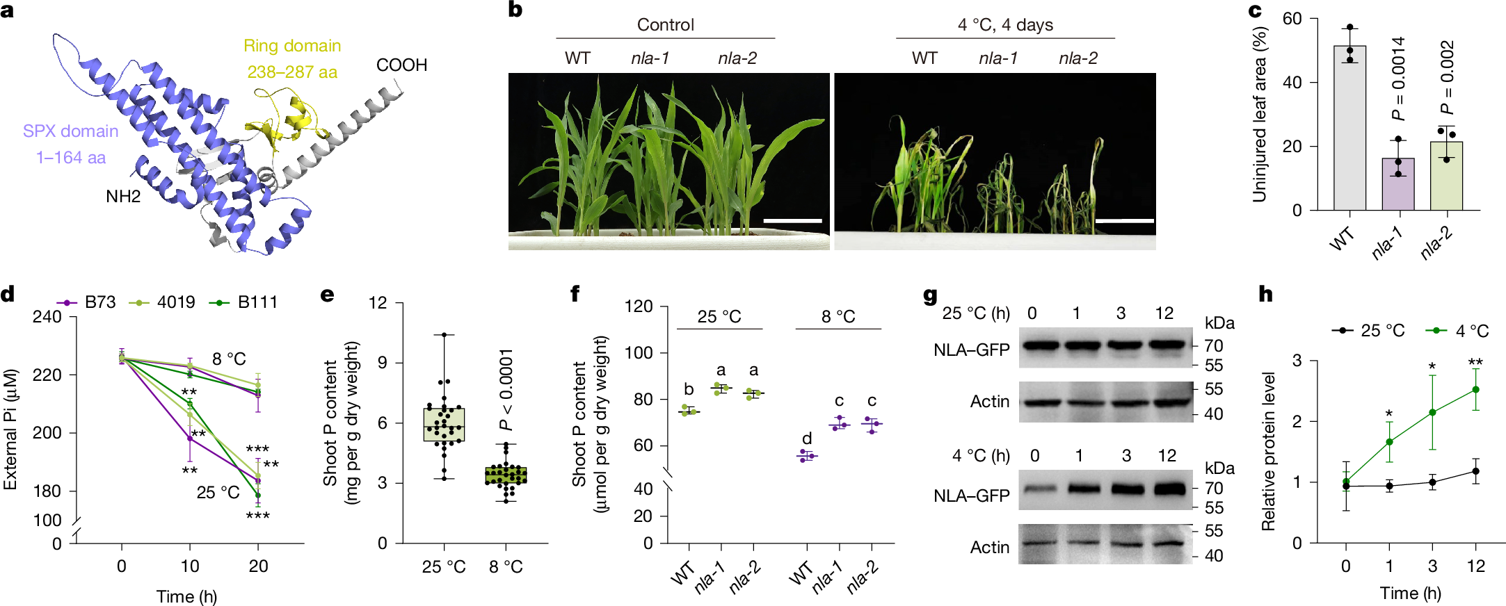Researchers identified the E3 ligase NLA as a key regulator linking cold stress and phosphate uptake in maize. By engineering a variant (NLA Δ12) that maintains cold tolerance while improving phosphate efficiency, they enhanced crop resilience and yield in field trials.