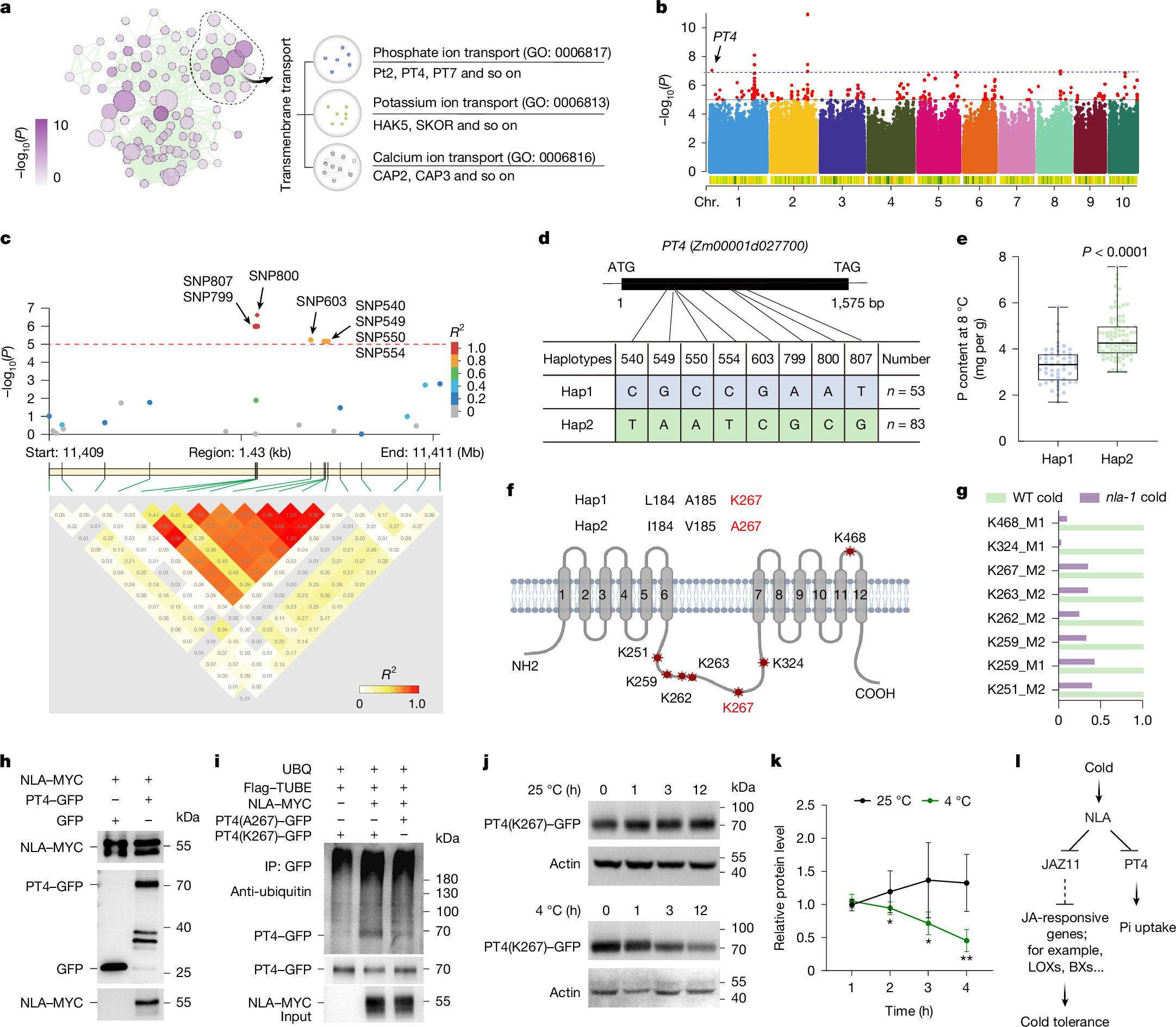 - •A natural PT4 variant (K267A) was found to increase phosphate uptake by resisting NLA-mediated degradation in cold conditions.