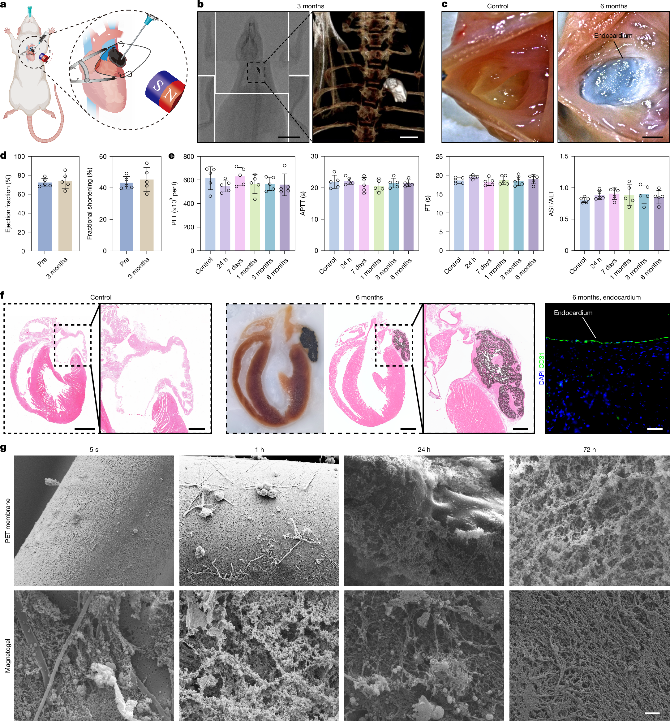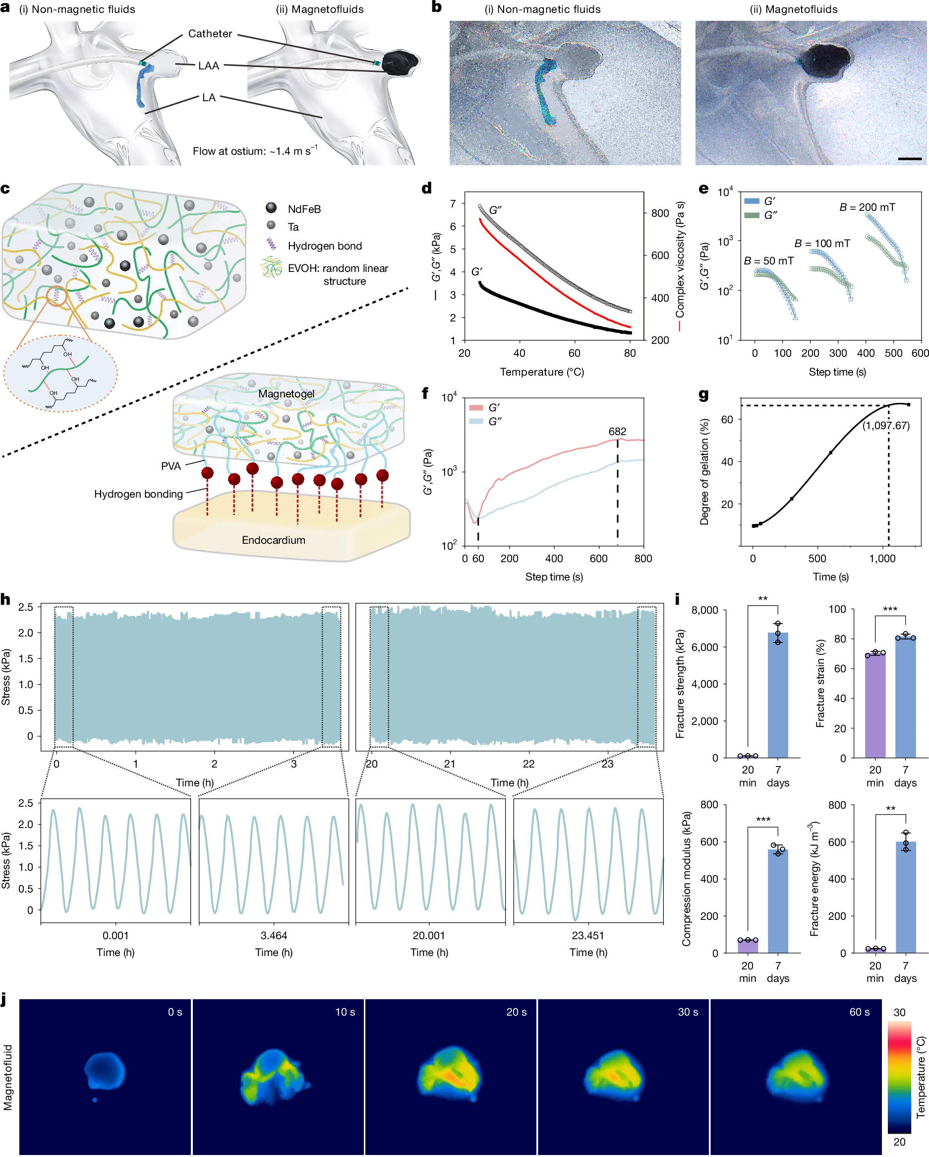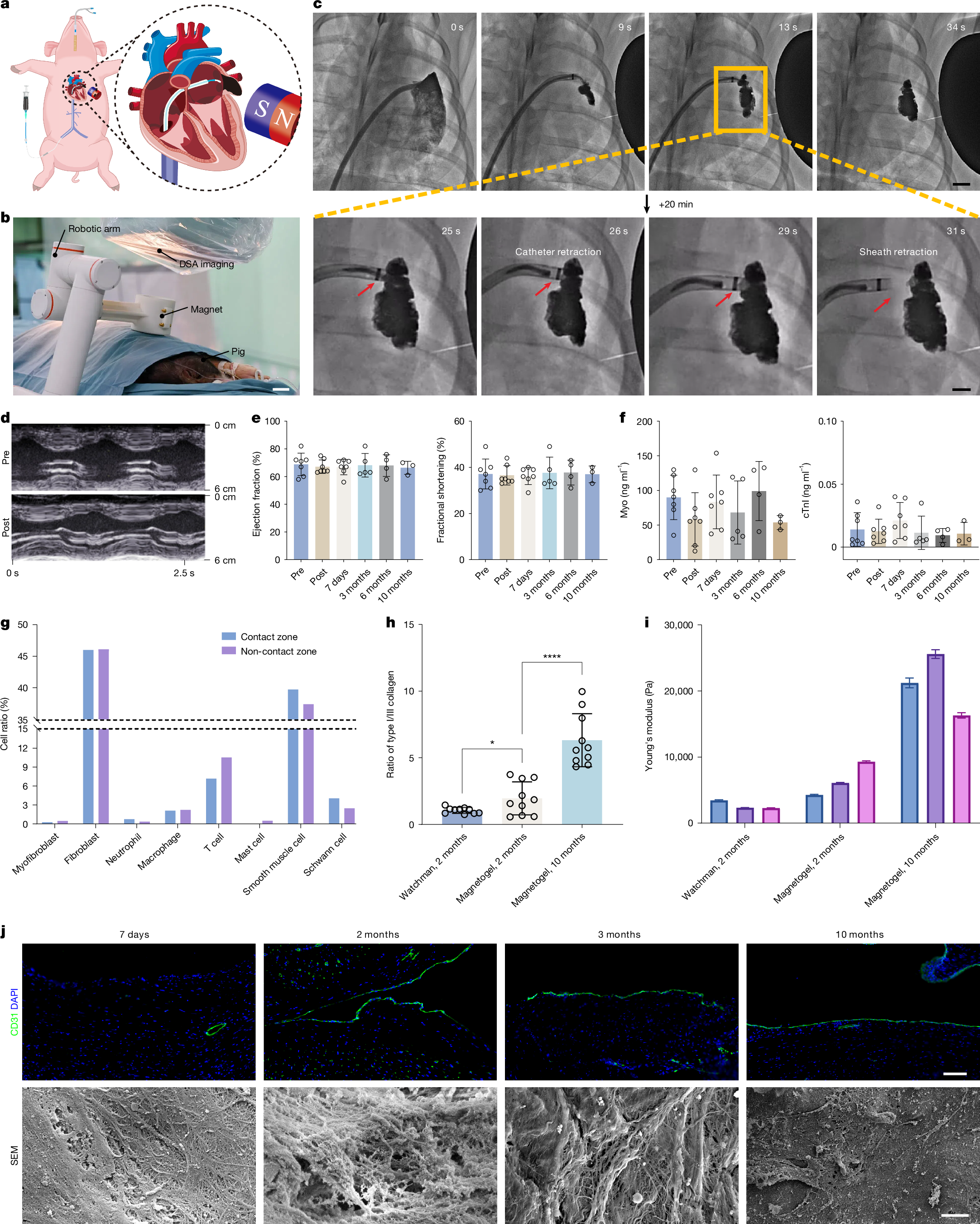 scRNA-seq data have been deposited in a public repository (ArrayExpress: E-MTAB-15847). The Sus scrofa (pig) reference genome (Sscrofa11.1) can be found at NCBI (GCF_000003025.6). Other original data including the animal-based dataset and retrospective clinical dataset are available at GitHub (https://github.com/rinrpg/Origin-data-of-Long-term-thrombus-free-left-atrial-appendage-occlusion-via-magnetofluids). Authentication documents of the cell lines are available at GitHub (https://github.com/silver2008a5/Cell-line-authentication-documents.git). The animal illustrations in Figs. 3a and 4a and the cardiac illustrations in Fig. 4a and Supplementary Fig. 41a were adjusted using BioRender. The original illustrations can be downloaded from the following links: models of rat and its heart in Fig. 3a (https://BioRender.com/yl2wllu); pig model in Fig. 4a (https://BioRender.com/g716ki6); and cardiac models in Fig. 4a and Supplementary Fig. 41a (https://BioRender.com/3a9pht3). Source data are provided with this paper.