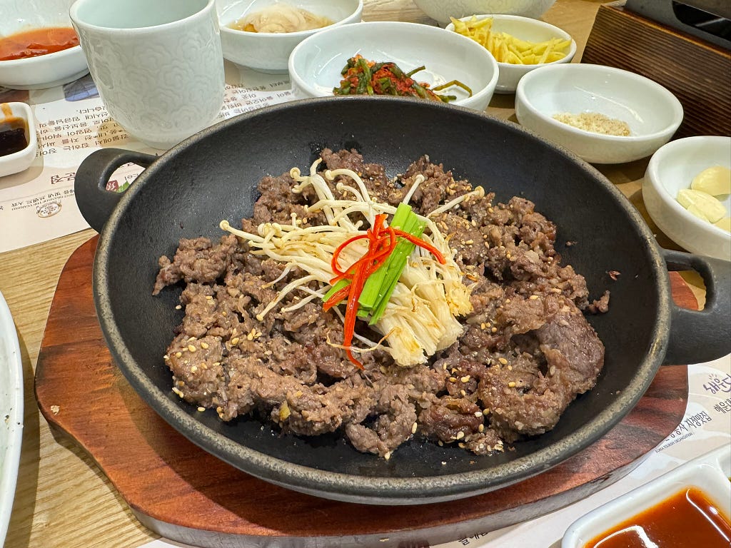 我們直接點雙人套餐(內容是肉各一+大醬湯+釜飯)然後再一瓶 Cass 啤酒,實刷約 NT$1,500。