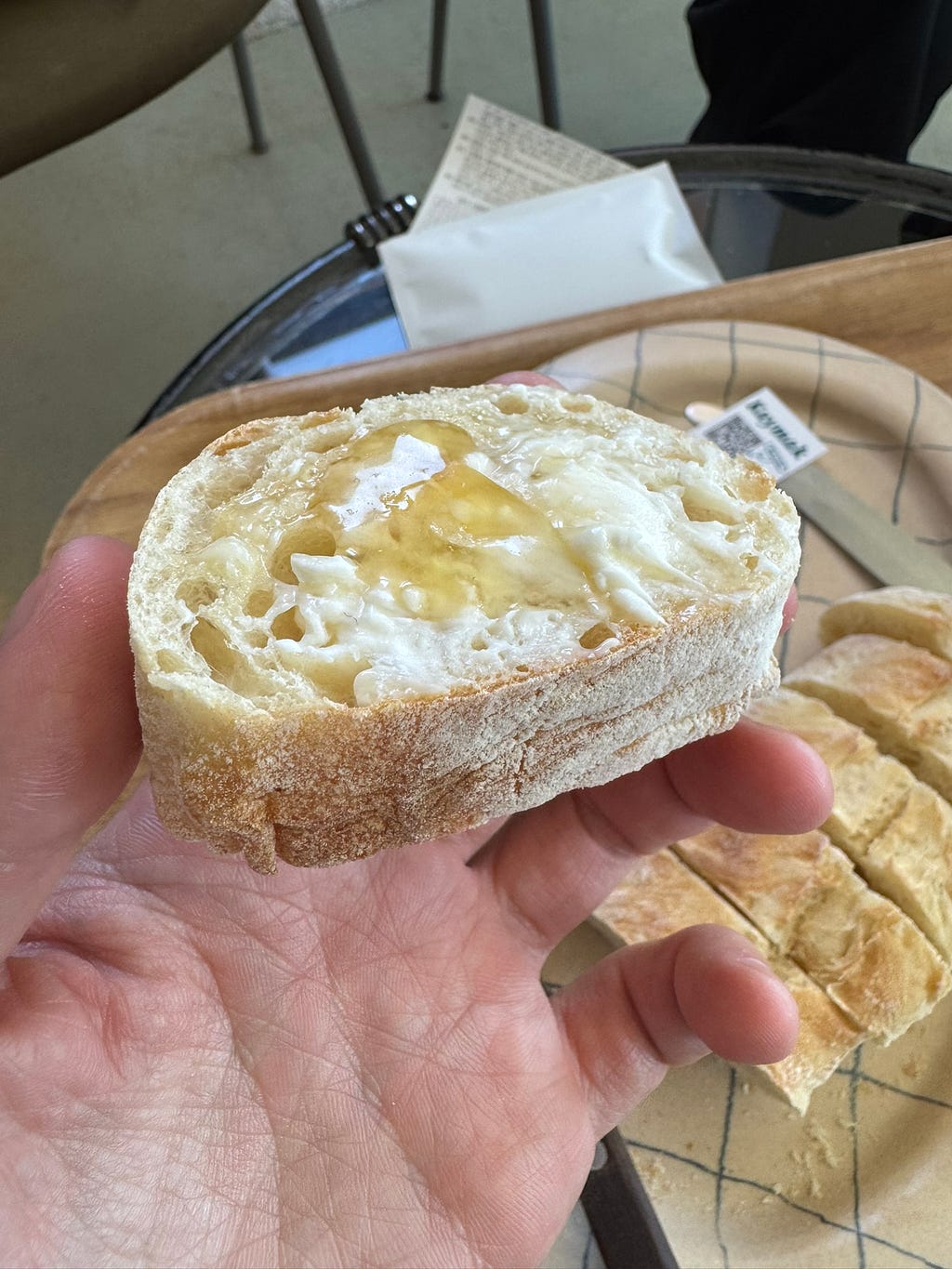 蜂蜜不會太甜加上奶油的奶香配上香脆的麵包,好吃又不膩。