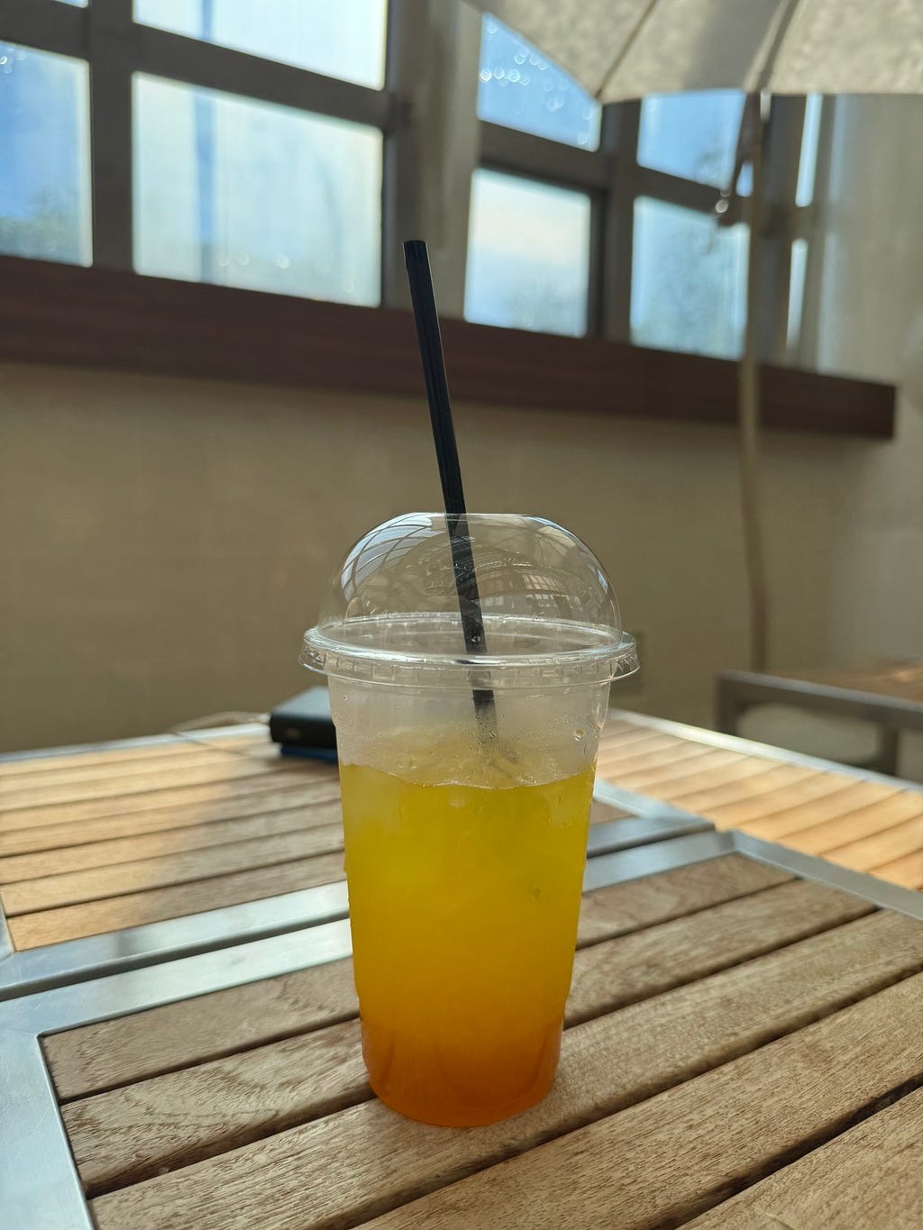 去完三溫暖就去日光浴區躺著曬太陽了,點了一杯飲料(超甜)。