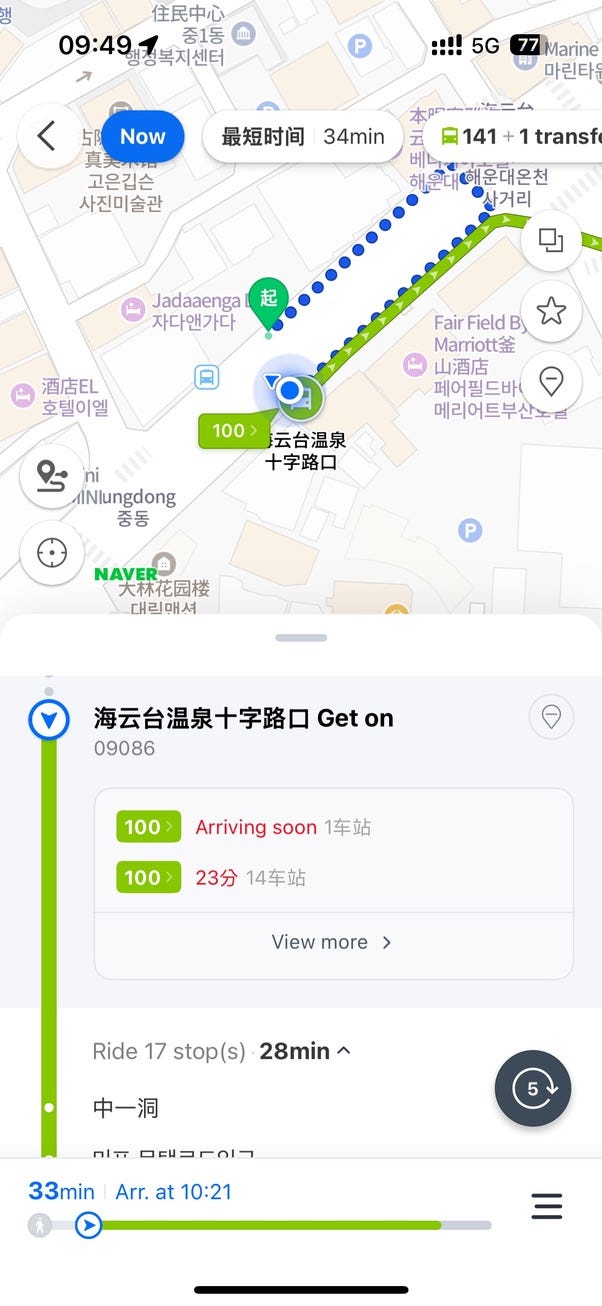 不管是哪一種都建議行前先在台灣用信用卡(因為有可能只支援某些發卡機構)先加值好或是攜帶一些現金到韓國用機台加值。Naver Map
