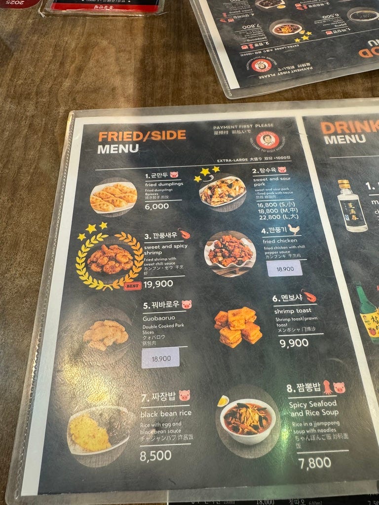 點了炸水餃、糖醋肉(中,感覺可以點小的)、韓式炸醬麵。
