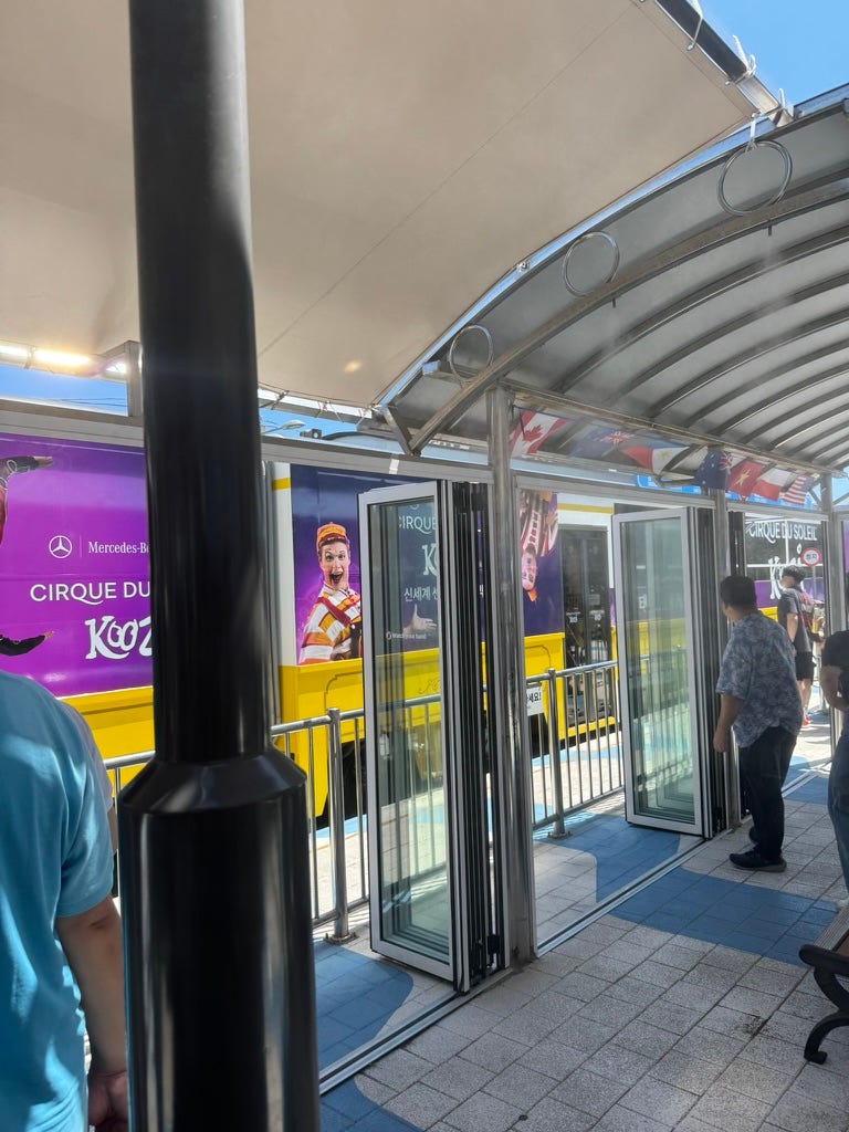 排隊區域上方有冷氣,上車前才會核銷憑證(記得先開好),上車後工作人員會拍一張合照,再看下車後要不要跟他們購買。