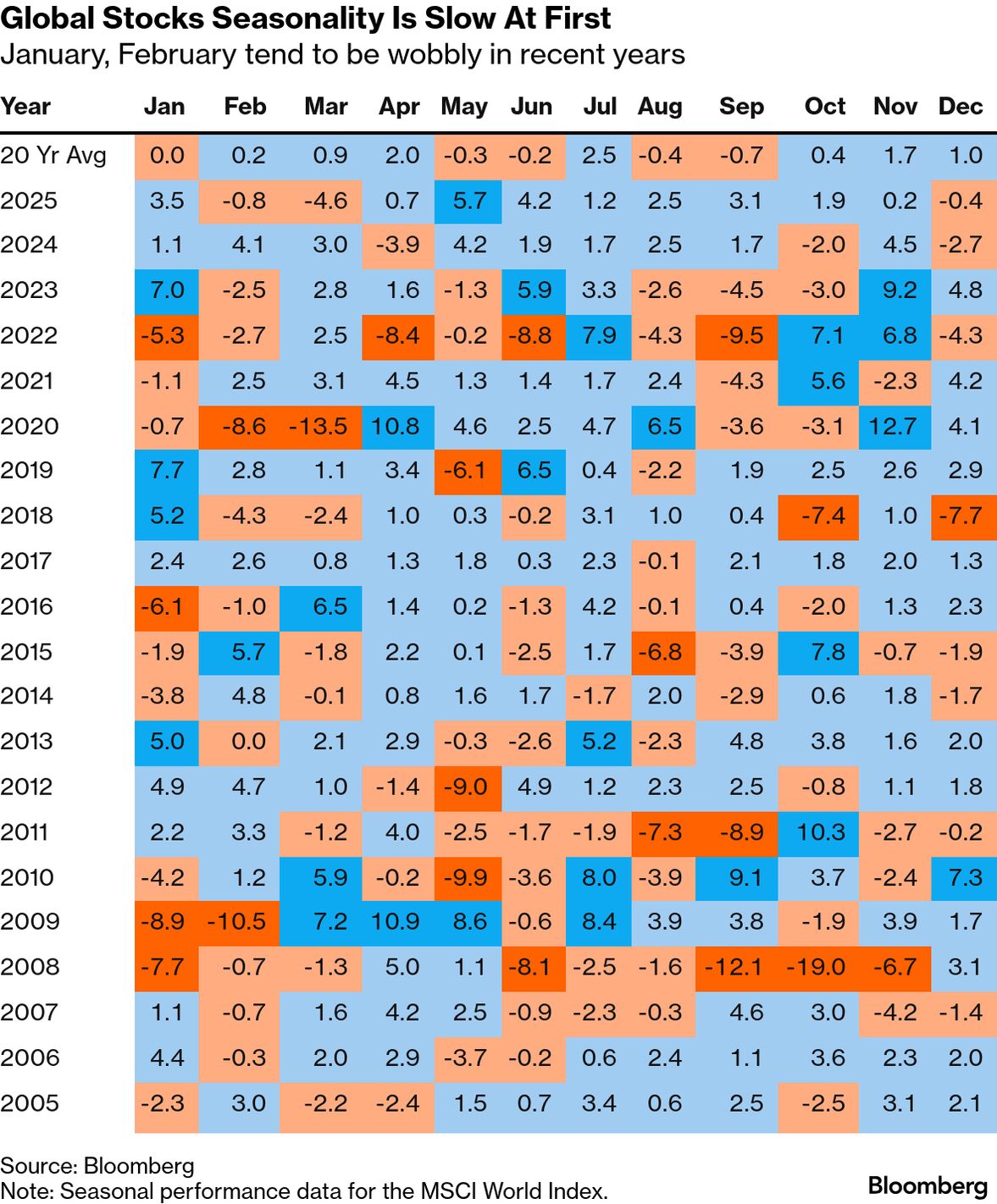 Seasonal appetite for risk taking as a new year begins is usually considered a tailwind for stocks. Fresh risk budgets, a reset of performance measures and inflows into pensions are some of the factors that typically provide a boost.