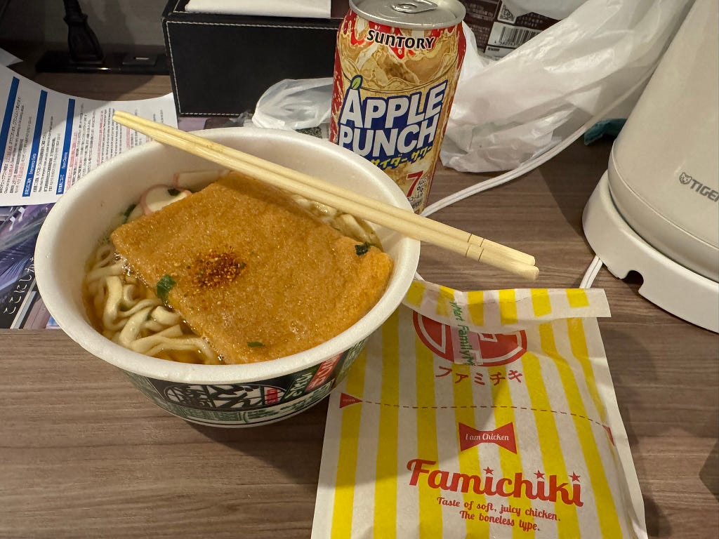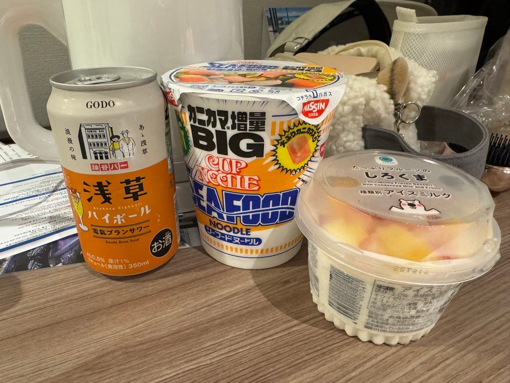 經典豆皮泡麵+超商炸雞+酒。