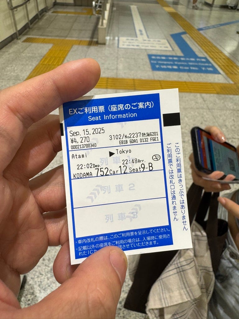 - 熱海 22:02 -> 東京 22:48 — こだま Kodama 752
