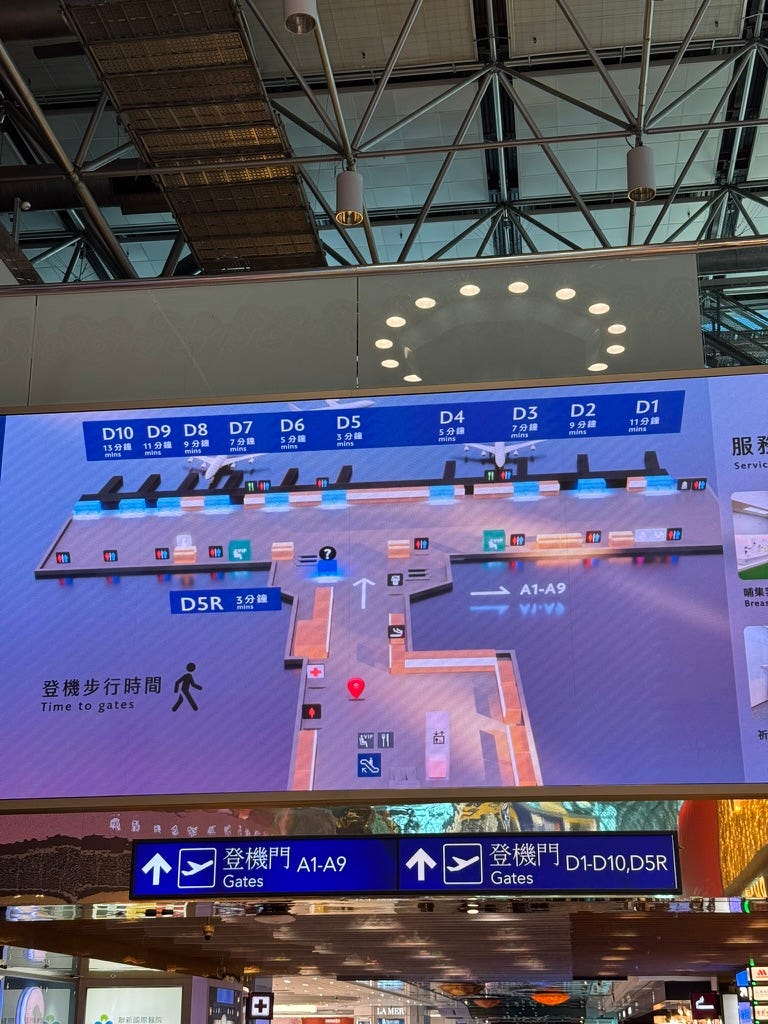 一早人蠻多的,大約 8:20 左右完成安檢出境,先去二樓吃個摩斯當早餐;分配到的登機門也是最遠的 D1。