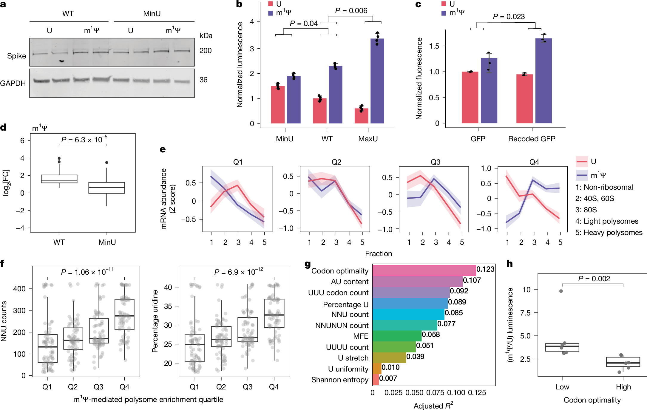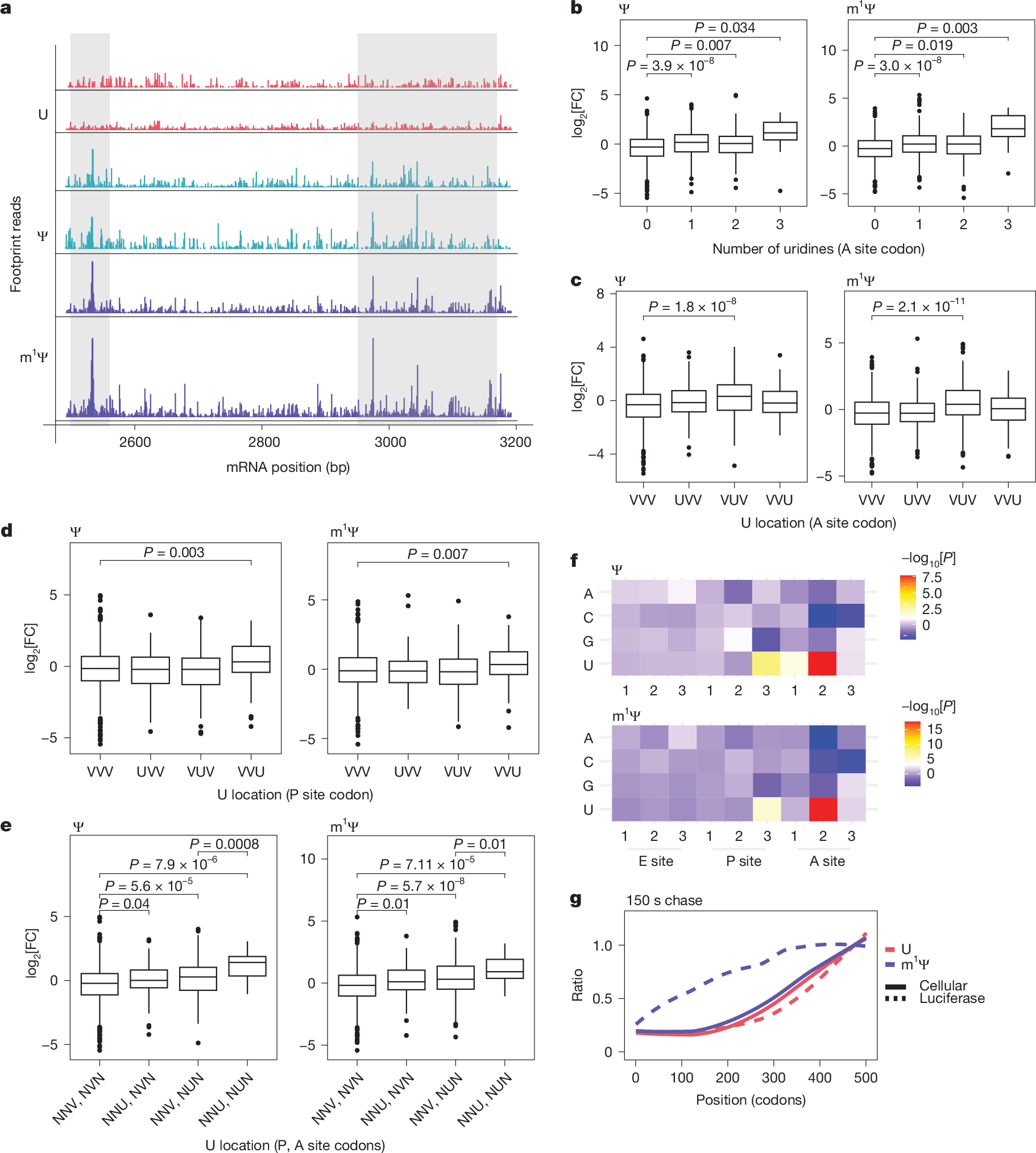 - •m1Ψ's enhancement effect is modulated by codon composition and strongest in mRNAs with non-optimal codons containing uridines at wobble positions