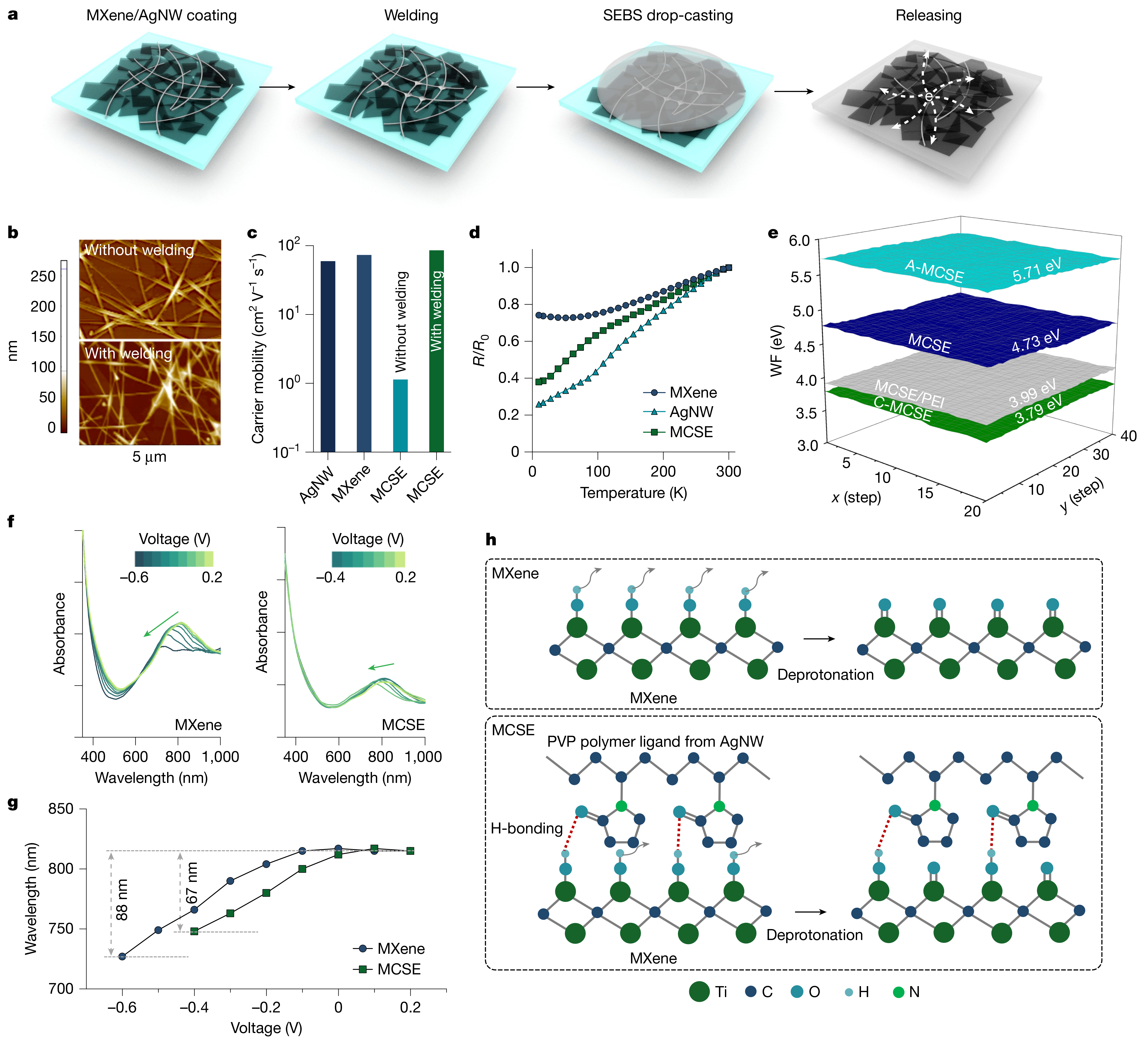 - •Integrated MXene-contact stretchable electrodes with high mechanical robustness and tunable work function for efficient charge injection.