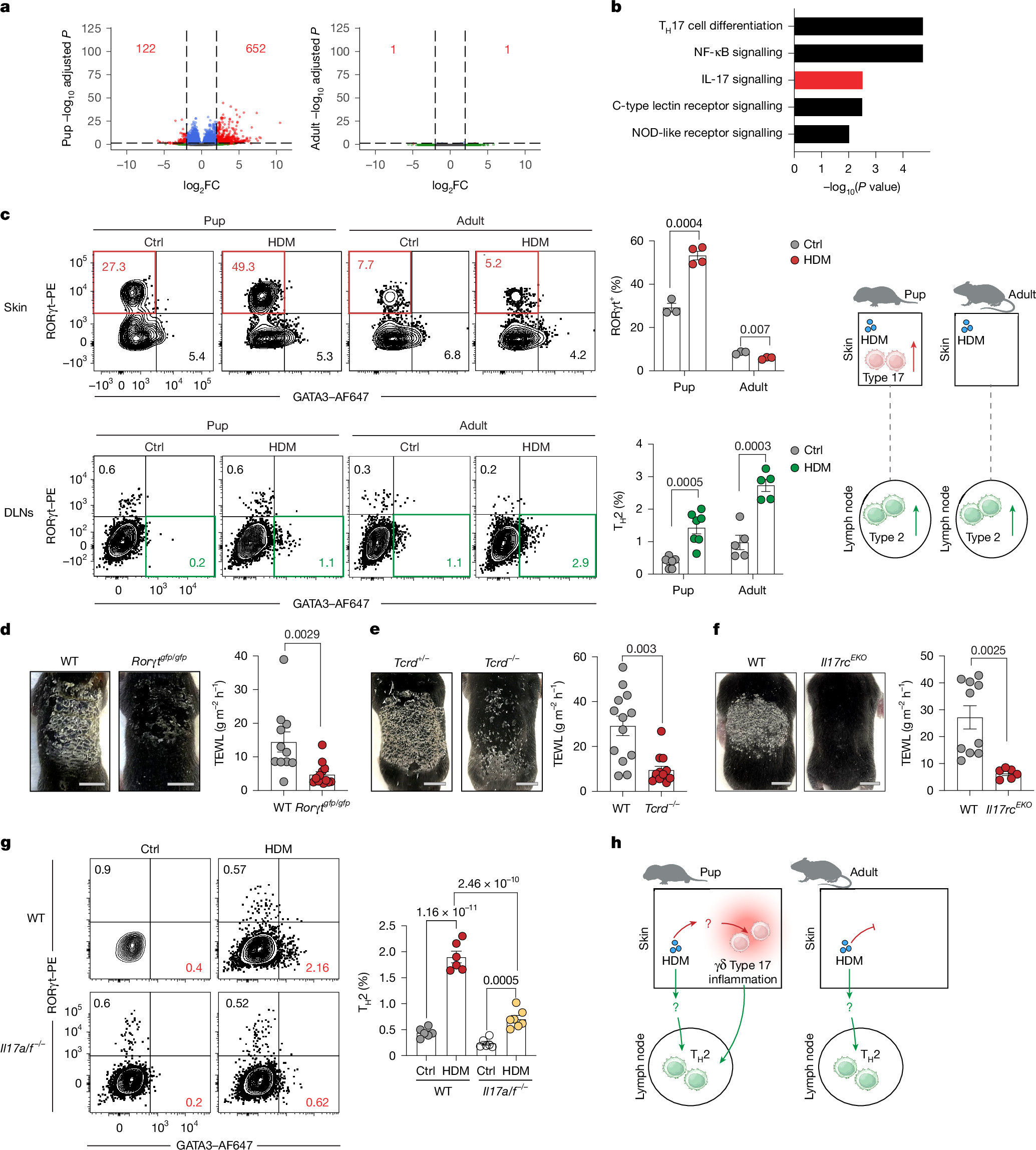 - •Early-life allergen exposure triggers simultaneous type 17 skin inflammation and T helper 2 sensitization in lymph nodes.